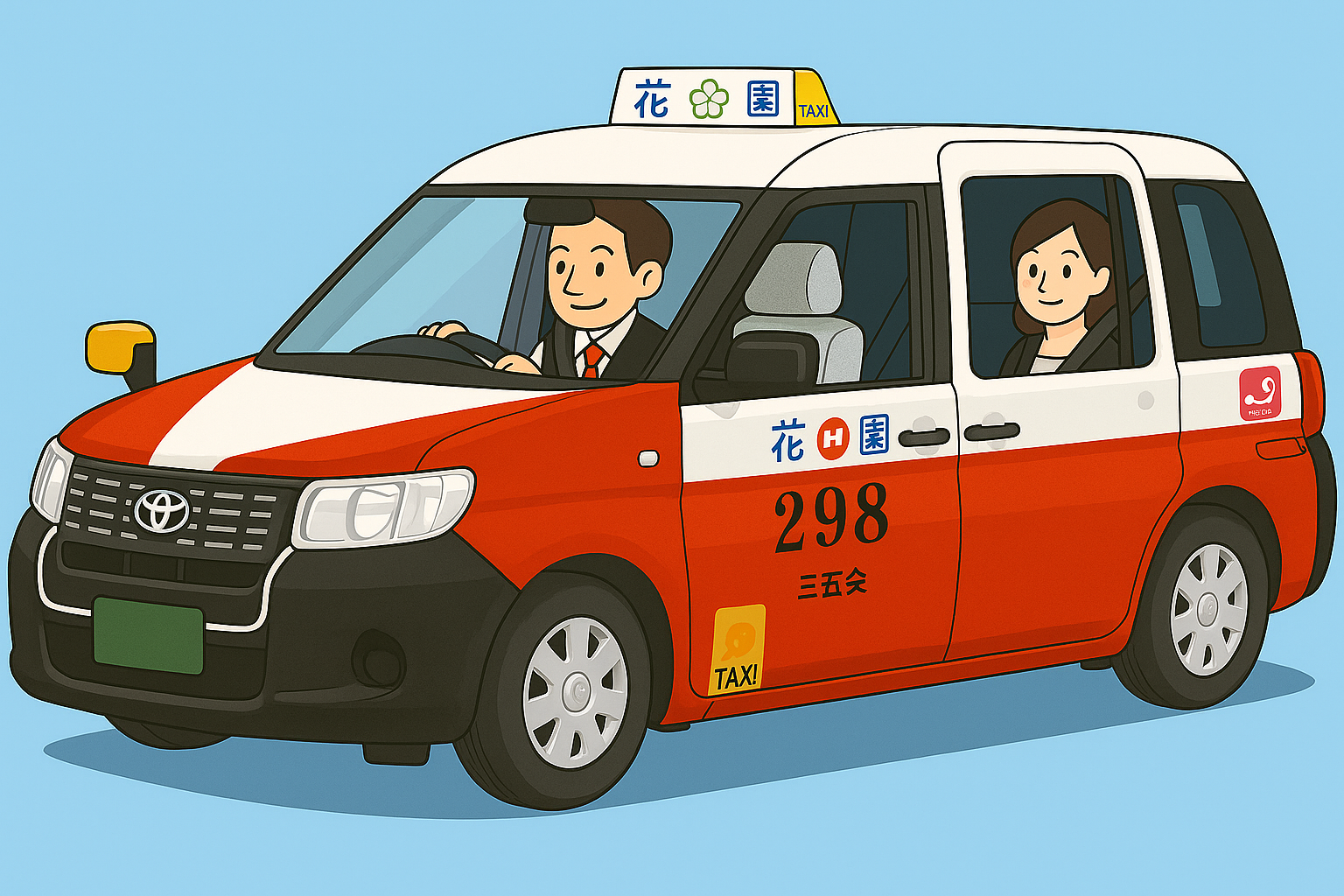 普通車(タクシー)の初乗り運賃は、1,064mまで670円でその後は268mごとに80円ずつ加算されます。迎車の場合は迎車料金300円を頂いております。