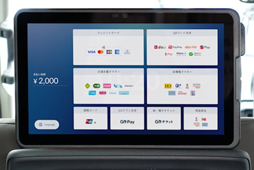 後部座席タブレットで各種お支払いが可能です